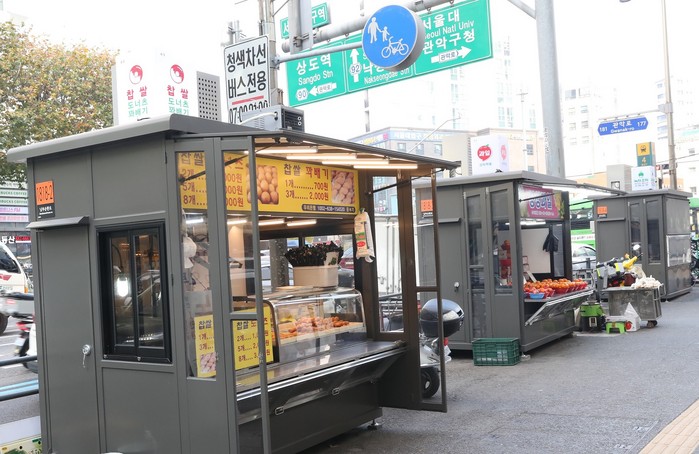 먼저 보행불편과 도시미관을 해치던 신림역·서울대입구역 주변 무허가 노점이 정돈되고 거리와 조화를 이룬 거리가게로 싹 변신했다. 지난 5월 신림역 일대 21곳, 9월에 서울대입구역 일대 19곳, 올해 총 거리가게 40곳의 판매대 교체와 정비 작업을 실시했다.