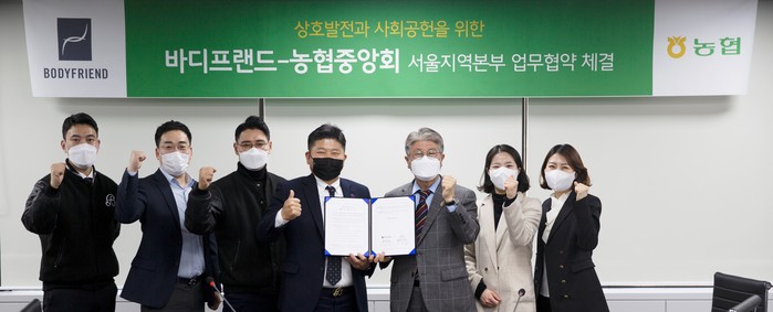 농협중앙회 서울지역본부(본부장 이대엽)는 ㈜바디프랜드(대표 박상현)와 상호 유기적인 업무협력 체계를 구축하고, 사회공헌을 활성화하는 등 사회적 가치 실현을 위한 업무협약을 체결했다고 18일 밝혔다.
