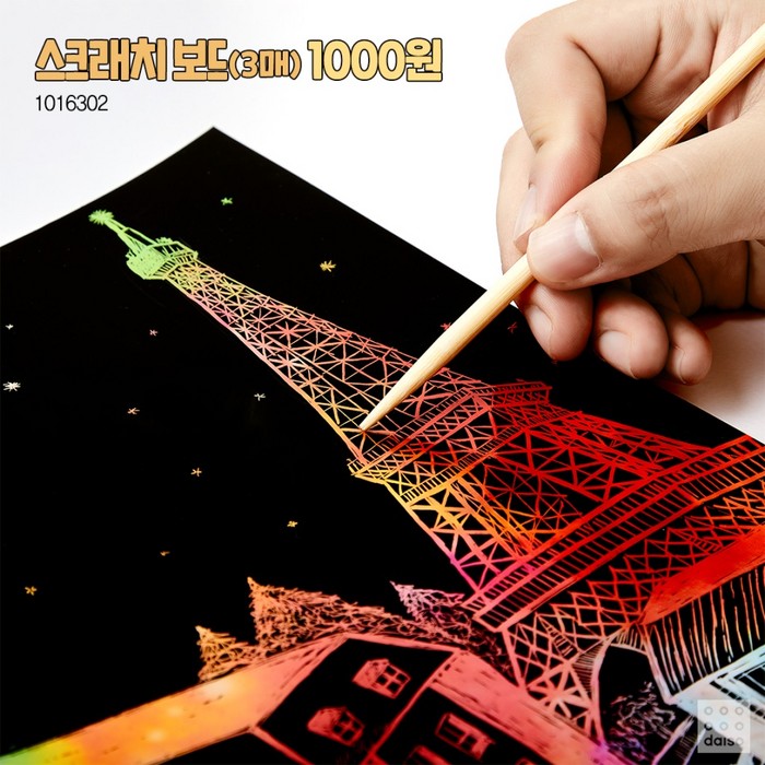 미술용품은 미술 초보자도 즐길 수 있는 상품으로 구성됐다. ‘스티커 아트보드’ 는 번호가 적혀진 그림에 퍼즐을 맞추듯이 스티커를 붙이는 상품이다. 스티커도 번호가 적혀있어 붙이는 방법이 어렵지 않고, 핀셋이나 족집게를 사용해 붙이면 더 깔끔하게 작업할 수 있다. ‘스크래치 보드 세트’ 는 나무펜과 스크래치 보드로 구성되어 있는 상품으로, 검은색 스크래치 보드에 나무펜으로 그림을 그리면 검은색 바탕 안에 있는 숨어져 있던 화려한 색들이 표현되는 상품이다. 간단한 그림만 그려도 화려한 색깔 덕분에 근사한 그림처럼 느껴지는 상품이다.