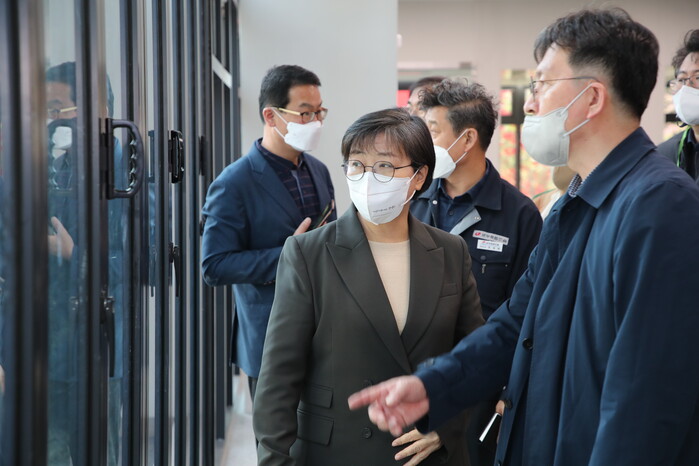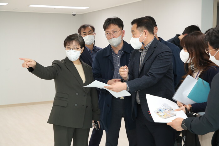 이순희 서울 강북구청장이 지난 29일, 내달부터 입주가 시간되는 번동 주공3단지 ‘세대복합주거단지’에 방문해 시설들을 점검하고 있다.