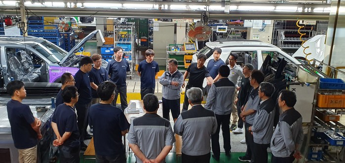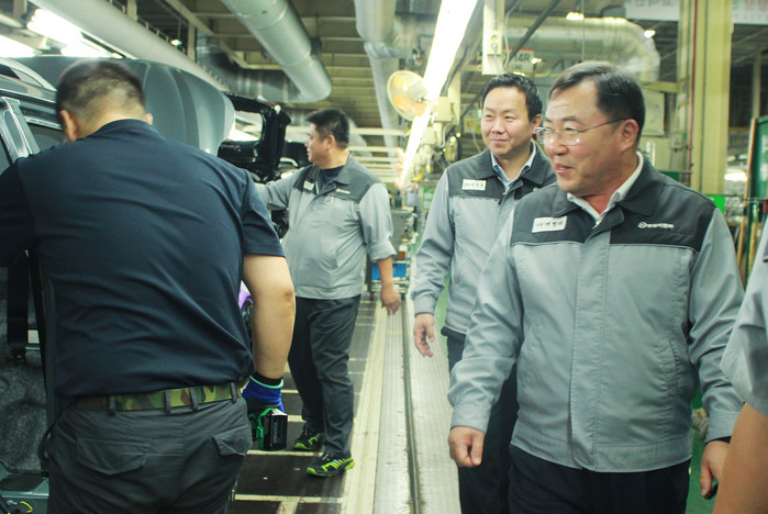 | ▲쌍용차 예병태 대표이사가 지난 10일 추석을 앞두고 평택공장 조립라인을 방문해 직원들을 격려하고 회사 정상화 방안에 동참해 줄 것을 당부했다.(쌍용자동차 제공) |