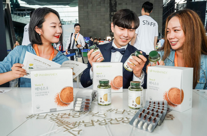 특히 뉴스킨과 파마넥스, 빅플래닛 브랜드의 주요 신제품을 경험할 수 있는 체험존에는 많은 참석자들의 발길이 이어졌다. 또 뉴스킨의 인공지능(AI) 무인판매대, 가상 운동 경험이 가능한 VR바이크 등의 디지털 컨텐츠를 미리 체험해 볼 수 있는 부스도 젊은 회원들의 열띤 호응을 얻었다.