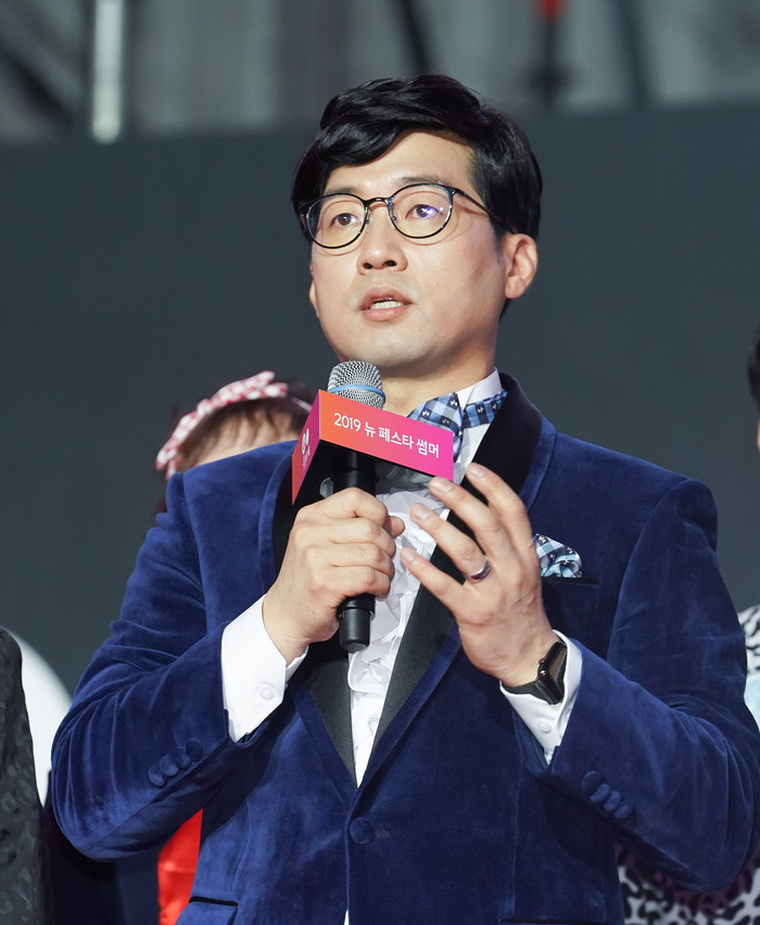▲지난 4일 부산 해운대 영화의전당에서 열린 ‘2019 뉴 페스타 썸머’에서 조지훈 뉴스킨 코리아 대표이사가 비전 스피치를 하고 있다.