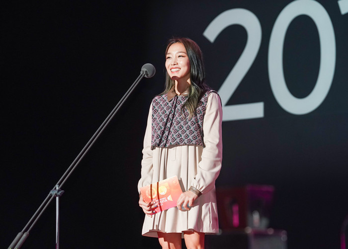 ▲지난 4일 부산 해운대 영화의전당에서 열린 ‘2019 뉴 페스타 썸머’에서 뉴스킨 홍보대사이자 ‘뉴 챌린저(Nu Challenger)’로 활동 중인 김자인 선수가 인사말을 전하고 있다.