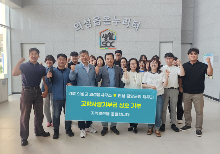 지난 5월 30일 담양군 재무과에서 의성읍온누리터 우수 청사 선진지를 견학하고 고향사랑기부제의 각종 기부 혜택과 특색있는 답례품을 이야기하던 중 공직자들이 고향사랑기부금을 상호 교환 기부하자고 밝혔다.