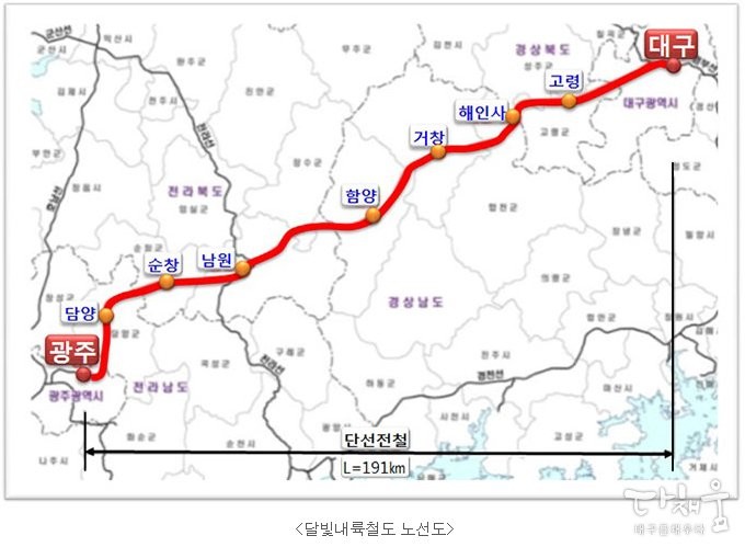 대구와 광주를 잇는 '달빛내륙철도 건설사업'은 영·호남이 1시간 생활권을 형성해 인적·물적 교류 촉진으로 초광역 남부경제권을 구축하는 고속화철도 건설사업이다.