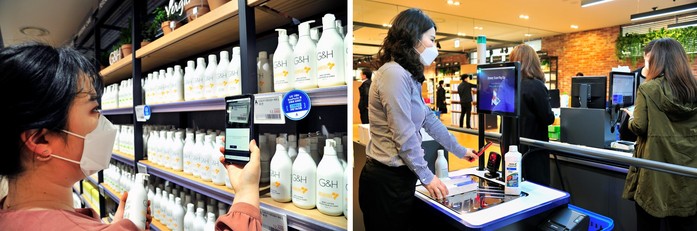 디지털 혁신을 가미한 공간 또한 현장에서 쉽게 만나볼 수 있다. 매장 내 셀프 체크 아웃이 가능한 무인 계산대 ‘스캔-페이-고(Scan-Pay-Go)’ 시스템이 대표적이다. 분당 ABC의 시범 운영 이후 해당 기술을 본격 도입한 최초의 사례이며, 이후 순차적인 전국 확대가 예정되어 있다.