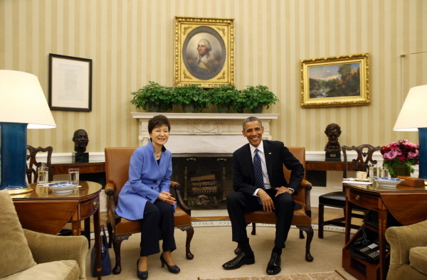 ▲ 지난해 5월 백악관에서 박근혜 대통령과 버락 오바마 미국 대통령이 한미정상회담을 하고 있다.<사진출처= 청와대 홈페이지> |