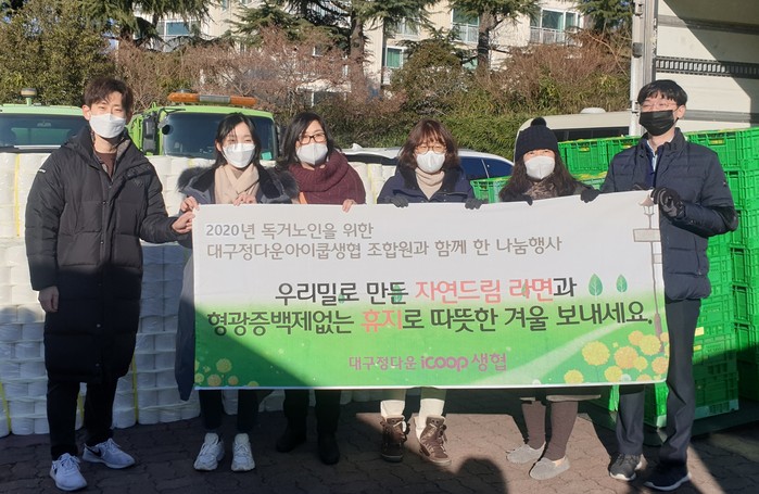 [로컬세계 박세환 기자]대구정다운아이쿱생협(대표 허성은)은 지난 17일 관내 취약계층을 위해 라면 500묶음과 휴지 500세트(430만원 상당)를 수성구청에 전달했다.