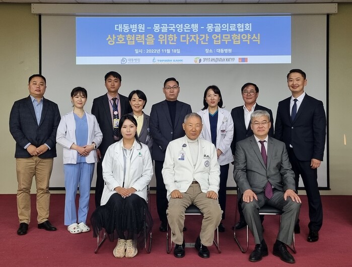 [로컬세계 부산=맹화찬 기자]대동병원은 지난 18일 대동병원 10층 대강당에서 몽골 국영은행 STATE BANK, 몽골 의료협회와 다자간 의료협약을 체결했다고 23일 밝혔다.