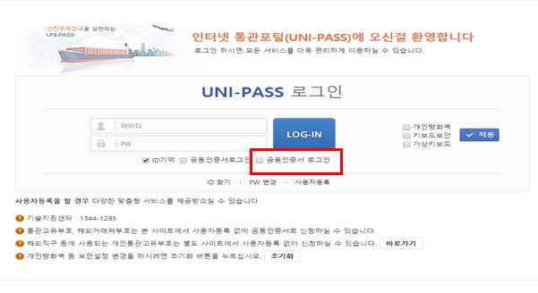또 관세청 인터넷통관포털 사이트인 ‘유니패스(UNI-PASS)’에 접속하거나 개인인증수단이 사용되는 서비스에는 금융인증서를 추가 적용했다.