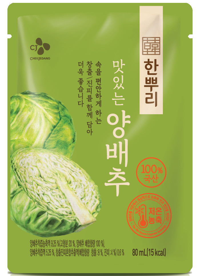 | ▲CJ제일제당 건강식품 전문 브랜드 한뿌리가 생약성분을 담은 한뿌리 양배추즙을 출시했다. |