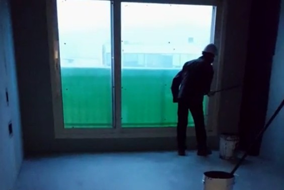 | ▲(주)실버리아‧파워실버 직원이 신축 아파트 벽면에 ‘실버리아100’을 칠하고 있다. |