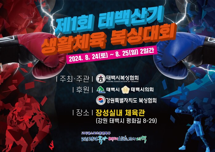 시 관계자는 “2024 태백산기 생활체육 복싱대회를 통해 우수 선수들이 기량을 펼치며, 상호 교류의 시간이 되길 바란다. 앞으로도 다양한 체육대회 개최를 통해 지역경제 활성화 및 스포츠 도시 태백의 위상을 강화해 나가겠다”고 전했다.