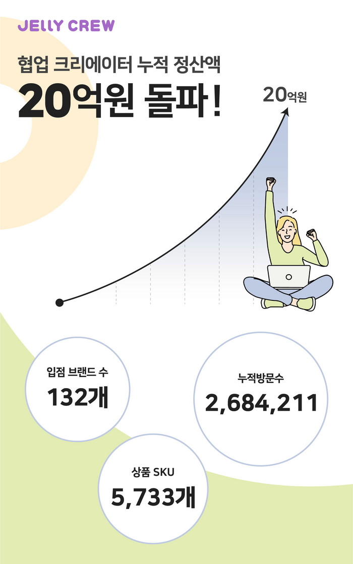 | ▲젤리크루, 협업 크리에이터 누적 정산액 20억원 돌파 이미지 |