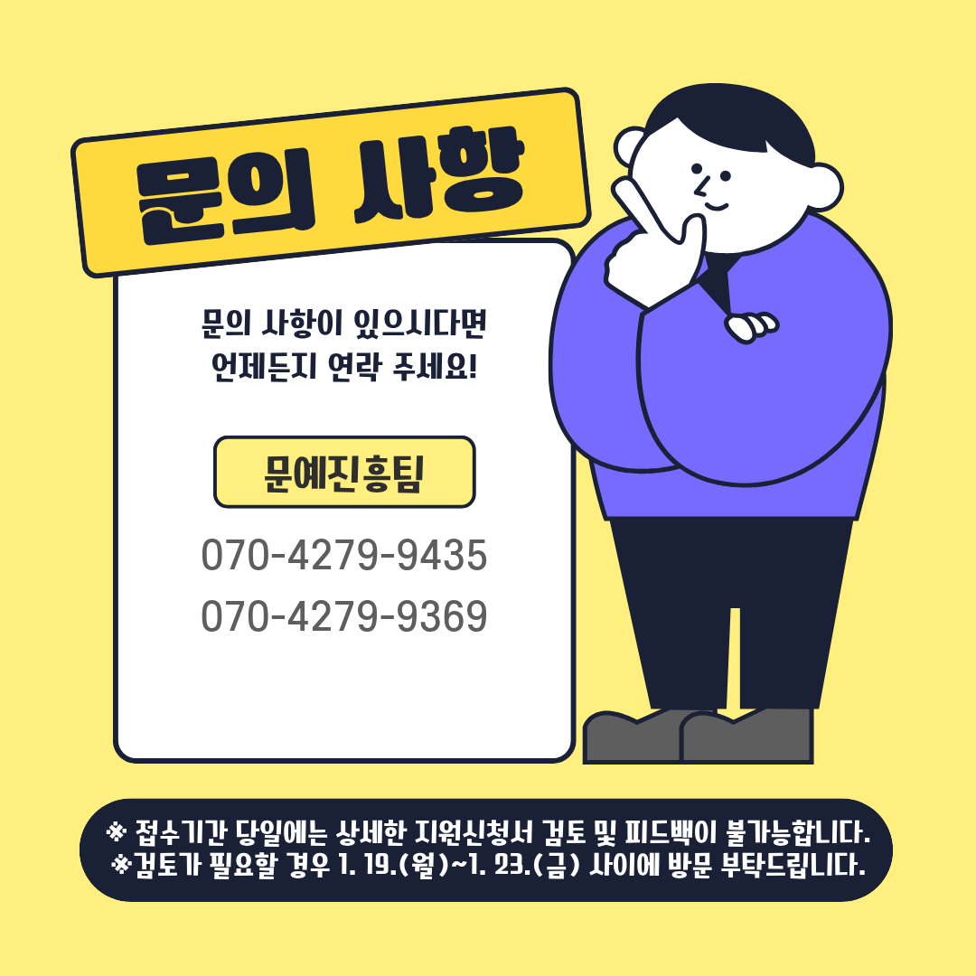 ‘지역문화예술지원사업’은 문학·시각·공연·교육·생애최초·축제 등 6개 분야로 나뉘며, 개인과 단체에 최대 1000만원까지 지원된다.