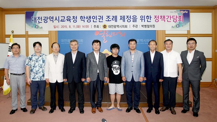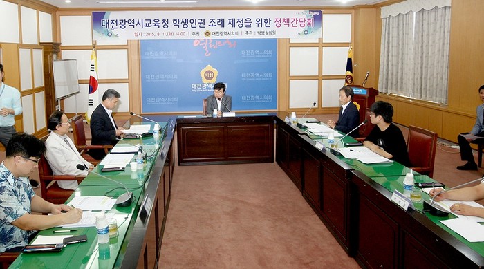 박병철 대전시의원을 좌장으로 지난 11일, 대전시교육청에서 열린 간담회에서는 학생의 존엄과 가치가 학교 교육과정에서 보장되고 실현될 수 있는 방안을 위해 필요한 사항을 조례로 정하기 위한 토론이 이루어졌다.
