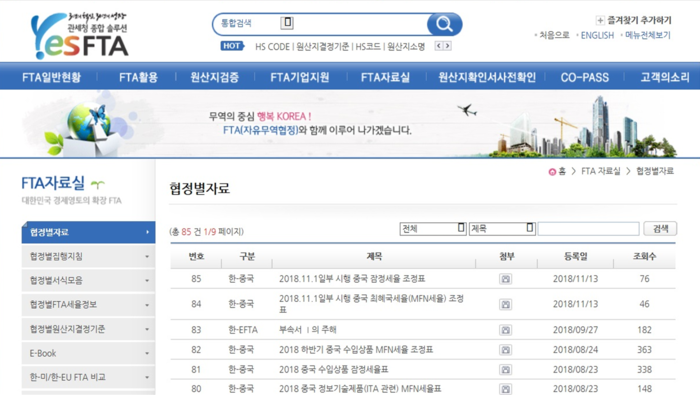 | ▲관세청FTA포털 협정별 자료실 화면.(관세청 제공) |