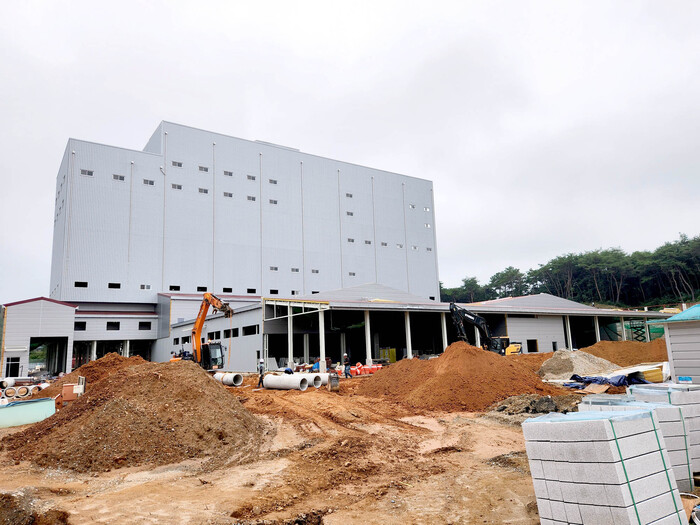 ▲농협사료는 지난 16일 충남 배합사료 공동사업 제5차 설립준비위원회를 당진에 위치한 신설공장 건설현장에서 성공적으로 개최하였다. 준공 마무리중인 현장 |