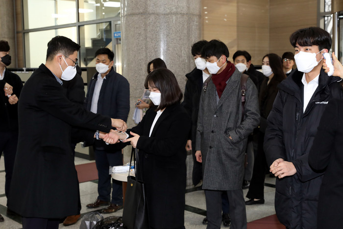 이에 따라 본사 내 출입을 통제하고 직원들의 출장과 외근 등 외부 활동을 최소화하는 가운데 상시 체온 측정으로 이상 가능성을 조기 발견하는데 주력하고 있다.