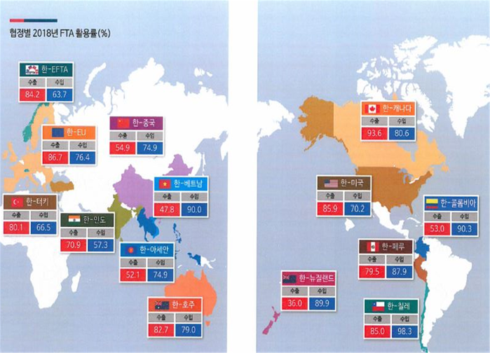 | ▲협정별 2018년 FTA 활용률. |