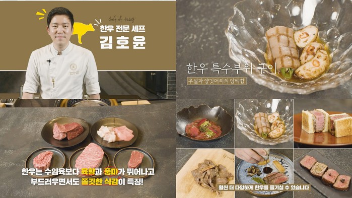 이번 유튜브 영상은 한우자조금관리위원회의 전문가 자문단으로 활약 중인 김호윤 한우 전문 셰프가 출연해 한우의 다양한 부위와 요리법을 활용한 다채로운 프리미엄 요리들을 선보이며 더욱 주목을 끌고 있다.