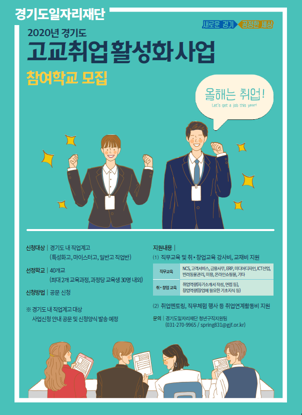 [로컬세계 고기훈 기자]경기도일자리재단은 올해 ‘고교취업 활성화 사업’에 참여할 학교를 모집한다고 16일 밝혔다.