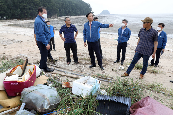 이날 쓰레기 침적 현장을 찾은 임 회장은 주민들에게 위로물품을 전달하는 한편 “집중 호우에 따라 어촌과 어장으로 흘러든 육상 쓰레기가 막대한 규모”라며 “어업인 피해를 막기 위해 하루 빨리 수거돼야 한다”고 우려를 표시했다.