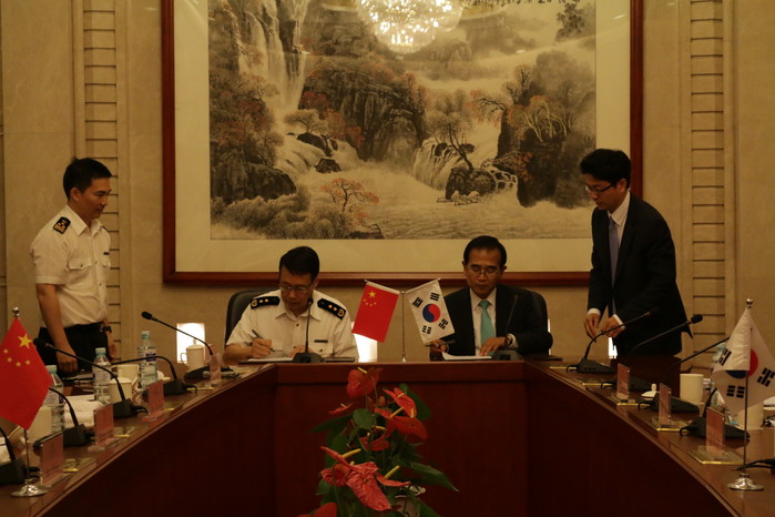 | ▲지난 24일 중국 베이징에서 열린 제18차 한중 관세청장회의 후 김낙회 관세청장과 쑨이뱌오(Sun Yi Biao) 중국 해관총서 부서장이 합의록에 서명하고 있다. |