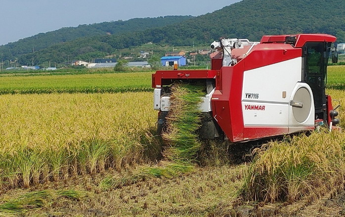 | ▲김포평야에서 콤바인으로 벼 수확을 하고 있다. |