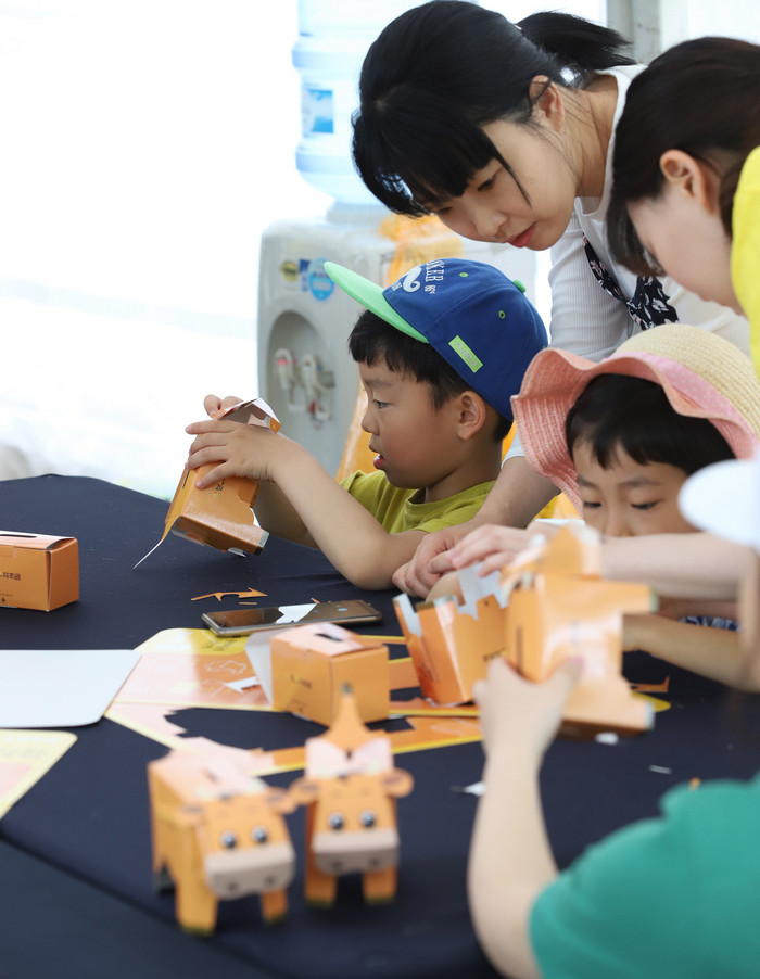 지난 4일 서울 어린이대공원에서 열린 한우자조금의 ‘도심에서 만나는 한우축제’에서 어린이들과 가족들이 한우 캐릭터를 활용한 저금통을 만들어보고 있다.