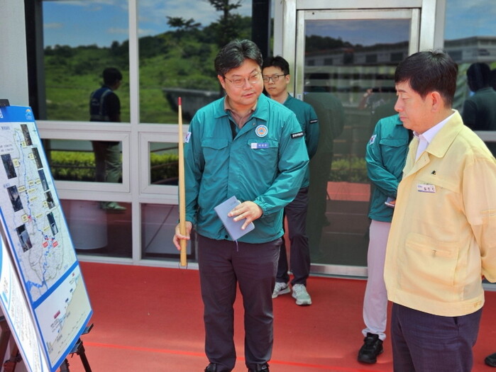 임진강 유역은 상류 약 63%가 북한에 속해 있어, 북한의 갑작스러운 방류에 따른 대비 체계가 주요 사안이다. 이에 김진기 부시장은 임진강 본류에 위치하고 있는 홍수조절 전용 단일목적댐인 군남댐을 방문해 상황 관리 및 근무 체계를 확인했다.