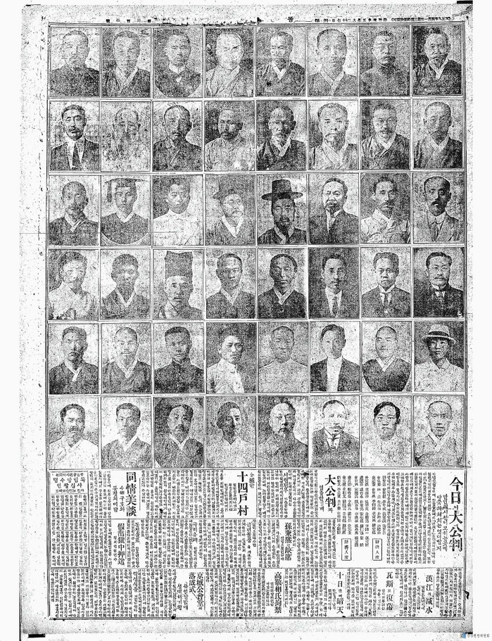 | ▲1920년 7월20일 민족대표 48인의 얼굴이 실린 동아일보. 김세환은 맨 마지막 줄 왼쪽에서 네 번째. |