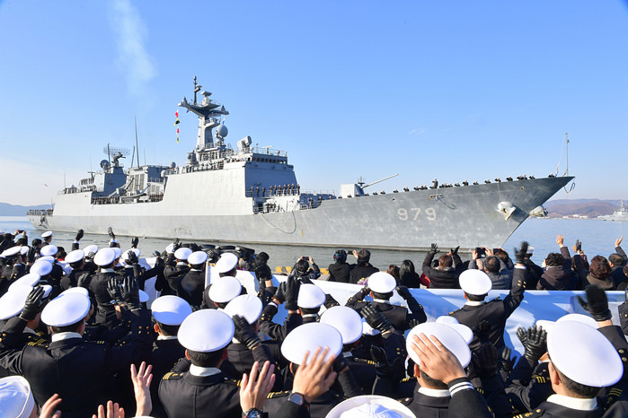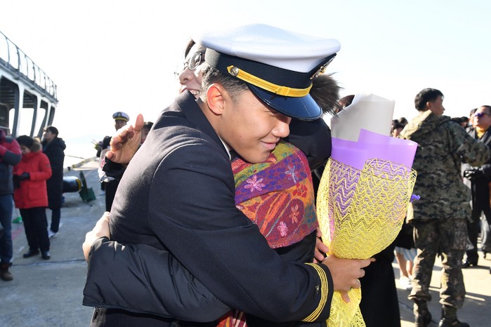 이날 정진섭 해군작전사령관 주관으로 열린 환영행사에는 해군 주요 지휘관 및 장병, 사관생도, 가족들이 참가했다.