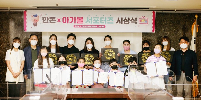 한돈자조금관리위원회(이하 한돈자조금)가 지난 19일 제2축산회관에서 국내 체험형 가족 예능 프로그램인 ‘TV아가볼(아이와 가볼만한 곳)’과 함께 ‘한돈·아가볼 서포터즈 2기’ 시상식을 진행했다고 21일 밝혔다.