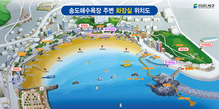 이에 따라 송도해수욕장에는 개장기간동안 기존화장실 4개소, 임시화장실 2개소, 식당화장실 19개소 등 총 25개소가 운영된다 .
