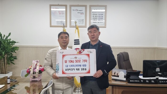 [로컬세계=박상진 기자]경북 의성군은 유진미강겨가 지난 27일 의성읍사무소 복지팀과 연계하여 관내 취약계층을 위해 쌀10kg, 50포(150만원상당)를 기부했다고 29일 밝혔다.
