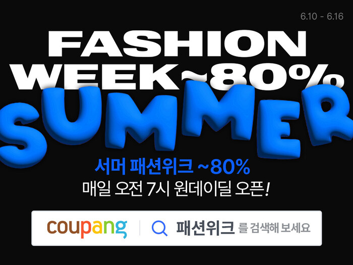 [로컬세계 = 마나미 기자] 쿠팡이 오는 16일까지 ‘서머 패션위크’를 개최한다. 이번 행사는 여성복·남성복·신발·가방·액세서리·언더웨어 등 패션 카테고리 상품 2만여 개를 최대 80%까지 할인하는 상반기 마지막 대규모 세일 행사다.