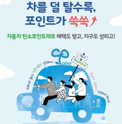 자동차 탄소포인트제는 비사업용 승용·승합차량 운전자가 평소보다 주행거리를 줄여 감축한 온실가스량에 따라 인센티브를 지급하는 제도이며, 가정의 온실가스 감축 실천프로그램인 탄소포인트제를 자동차 분야로 확대해 시민의 저탄소 녹색생활 실천확산을 목적으로 추진되고 있다.