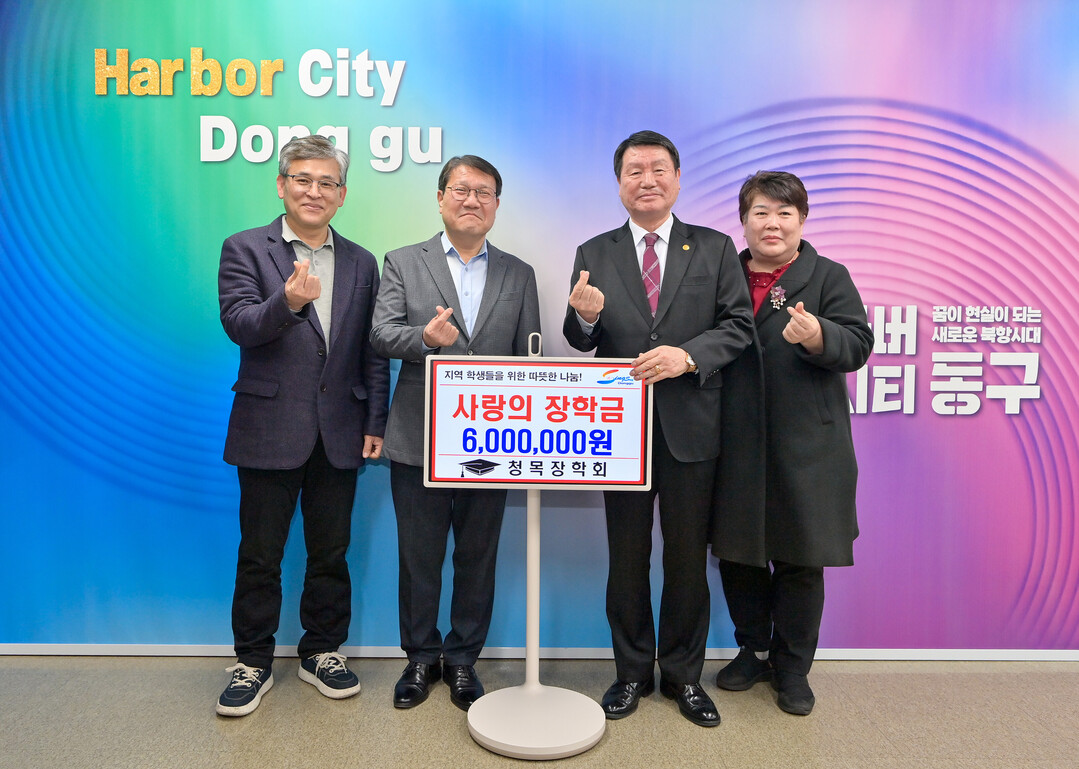 박진석 동구 부구청장은 “따뜻한 나눔을 실천해주신 청목장학회에 깊이 감사드린다”며 “전달된 장학금이 학생들에게 실질적인 도움이 되어 꿈을 키워나가는 디딤돌이 되길 바란다”고 밝혔다.