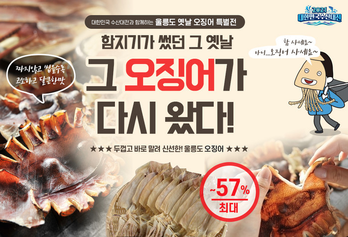 이외에 수협쇼핑은 코로나19로 인한 판로 위축으로 어려움을 겪고 있는 울릉도 어업인을 지원코자 ‘울릉도 옛날오징어 특별전’도 진행한다.