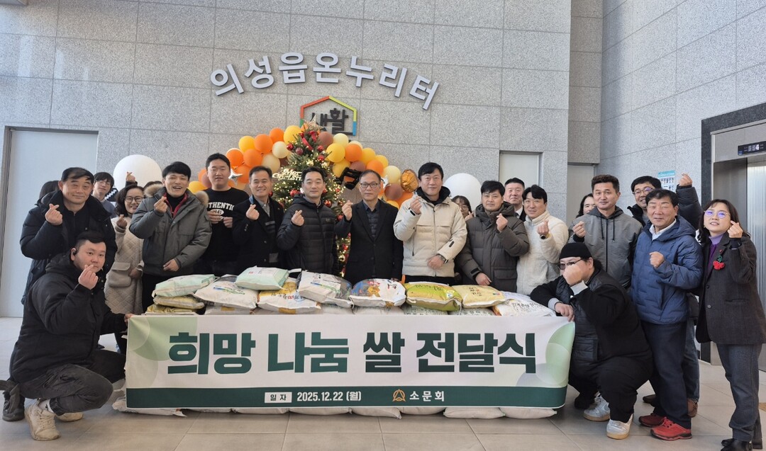 의성읍장은 “지역을 위해 꾸준히 나눔을 실천해 주는 소문회에 감사드린다”며 “기탁된 쌀은 도움이 필요한 이웃들에게 소중히 전달하겠다”고 전했다.