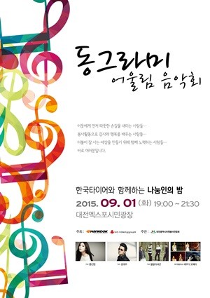 [로컬세계 조윤찬 기자] 한국타이어는 내달 1일 오후 7시 대전 엑스포 남문 시민광장에서 대전사회복지공동모금회와 공동으로 ‘2015 동그라미 어울림 음악회’를 개최한다.