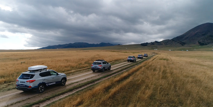 ▲중국 횡단 코스를 달리고 있는 G4 렉스턴 유라시아 대륙횡단팀. G4 렉스턴의 유럽 데뷔를 앞두고 진행된 대륙횡단 여정은 중국에서 영국까지 유라시아 대륙 13,000km를 아우르는 50여 일의 대장정으로, 험난한 지형과 기후에도 한 차례의 낙오 없이 완주에 성공함으로써 G4 렉스턴의 주행성능과 내구성을 비롯한 경쟁력을 입증할 수 있는 기회가 되었다. |