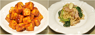 ▲두부강정(왼쪽)과 두부파스타. |