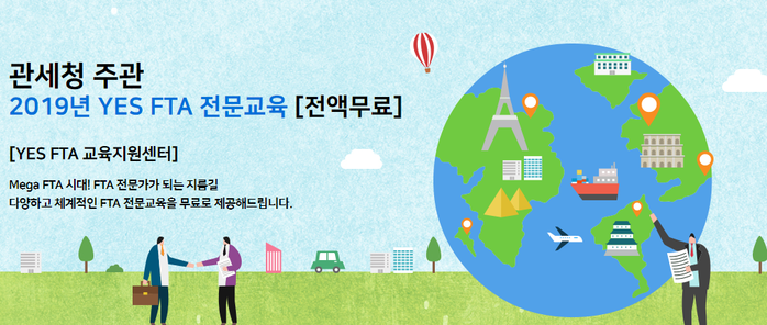 YES FTA 전문교육은 전액 무료며 국제원산지정보원과 신한관세법인이 교육을 진행한다.
