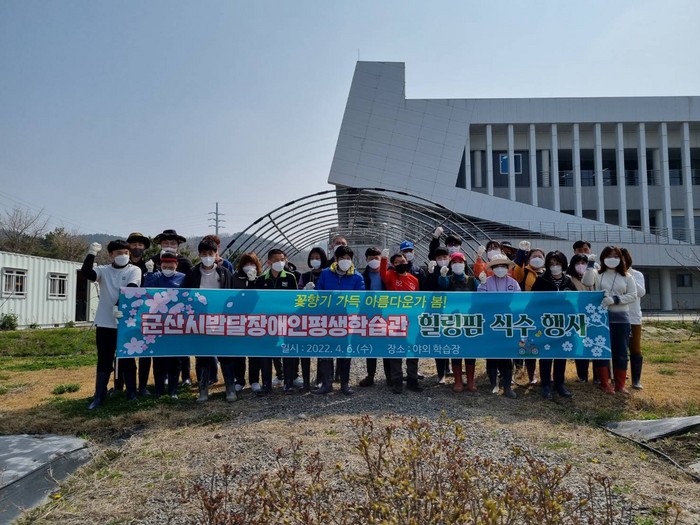 [로컬세계 양해수 기자]전북 군산시 발달장애인평생학습관은 수강생 등 50여 명이 참여한 가운데 야외원예학습장에서‘힐링팜 식수행사’를 진행했다고 7일 밝혔다.
