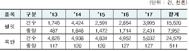 중금속이 다량 포함된 불량 목재펠릿은 미세먼지 발생의 원인이 되고, 목탄제품은 대부분 고기구이용 숯으로 사용되고 있어 수입 목재제품의 품질관리가 되지 않을 경우 국민 건강과 안전에 직접적인 위해 가능성이 높아 국내 반입단계에서 안전성 확보가 필요한 물품이다.
