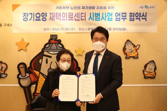 어르신들이 지역사회에 계속 거주하며 건강을 관리할 수 있도록 지원하는 이 사업은 2022년 12월 1일부터 2023년 11월 30일까지 1년 동안 시범으로 운영된다. 이에 구는 전문 의료진을 통한 원활한 의료 서비스 제공을 위해 정다운우리의원과 지난 11월 30일 업무협약을 체결했다.