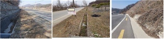 | ▲사진 왼쪽부터 길어깨 토사·쓰레기, 배수시설 퇴적토·불법광고, 생태교란야생물·잡초 |